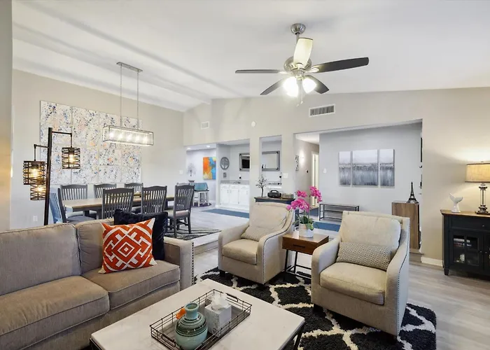 At Garlands Hidden Gem, guests can indulge in a delightful culinary experience. The versatility of the well-equipped kitchen allows for leisurely family dinners or entertaining friends out on the expansive patio. Embrace dining outdoors while basking in the warm Texas sunshine or under a starlit sky, creating cherished memories around the inviting hot tub that adds a touch of luxury to your stay.